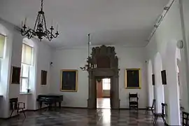 El acontecimiento más trágico en la historia de la casa consistorial fue el gran incendio que estalló en 1703 como consecuencia de los bombardeos por el ejército sueco que sitió a la ciudad. El fuego destruyó completamente las cubiertas y todos los interiores por encima de la planta baja. Sin embargo, las paredes de ladrillo se mantuvieron, lo que permitió la ulterior reconstrucción llevadas a cabo en el siglo XVIII. La torre perdió su cubierta de estaño, que no ha sido reconstruida.