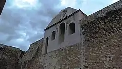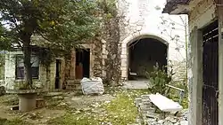 De este rectángulo, nace en el patio y se amplía hacia fuera, sobresalen dos cuerpos más, uno adosado al ala norte que conserva restos de la cocina, lo cual define la posición del refectorio próximo a la esquina noroeste del inmueble.[8] Alrededor de 1978, se destruyó parte de la crujía de la cocina.[8]