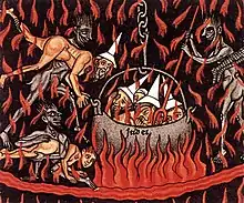 Aunque algún judío podía haber sido sorprendido blasfemando, esta conducta se atribuía a todos los judíos. De ahí la difusión de la leyenda del judío errante que relataba la condena impuesta por Dios de vagar eternamente a un judío que había insultado a Jesucristo en el camino hacia el Calvario.[33] Pero en ocasiones lo que ocurría era que los cristianos malinterpretaban fiestas judías, como la del Purim (muerte de Amán, el malvado que recoge el Libro de Ester), que creían que era una burla de la Crucifixión. Así cuando los judíos la celebraban en Castilla, los niños cristianos hacían sonar las carracas para ahogar los gritos de Aman —una costumbre que pasó a las procesiones de Semana Santa—.[35]