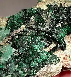 - Mrose, M.E. (1961). «Vernadskite discredited: pseudomorphs of antlerite after dolerophanite». American Mineralogist (en inglés) 46: 146-154.