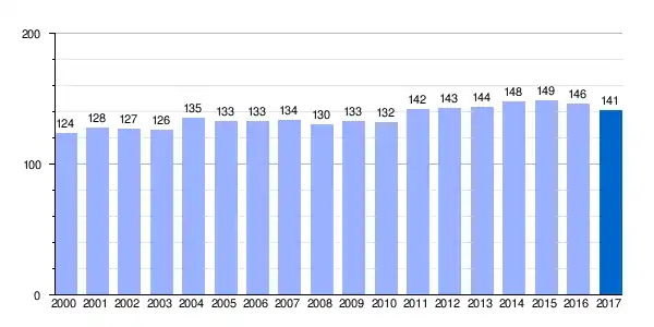 Gráfica de evolución demográfica de Antoñana[2] entre 2000 y 2017 |