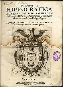 Praelectiones vallisoletanae in librum magni Hipp. coi De morbo sacro, en Madrid, por la viuda de Luis Sánchez, 1631; tratado dedicado al conde-duque de Olivares en el que, a pesar de la tardía fecha de su publicación, recogía algunas de sus primeras lecciones en la Universidad de Valladolid.[7]