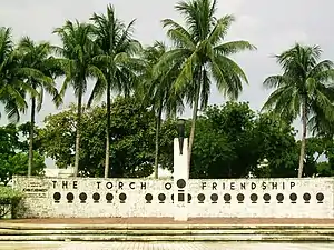 - Esta obra contiene una traducción derivada de «The Torch of Friendship» de Wikipedia en inglés, publicada por sus editores bajo la Licencia de documentación libre de GNU y la Licencia Creative Commons Atribución-CompartirIgual 3.0 Unported.