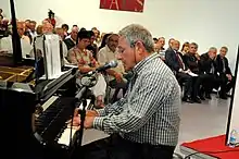 ![]() Antton Valverde al piano, en 2011, en el acto de entrega del Premio Rikardo Arregi. | ||