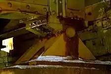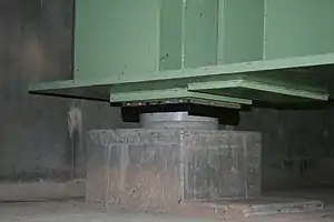 ![]() Apoyo deslizante para un puente con el tablero empujado sobre las pilas |