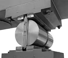 ![]() Aparato de apoyo de balancín con casquete esférico, que permite el giro de la pieza libre en cualquier dirección |