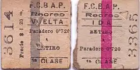 ![]() Boletos de ida y vuelta hacia Retiro | |||||||||