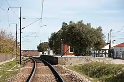 Este apeadero se encuentra entre las estaciones de Barreiro y Bombel de la Línea de Alentejo, habiendo este tramo entrado en servicio el 15 de junio de 1857.[1]