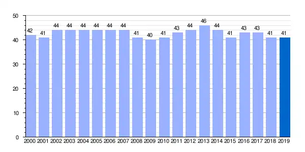 Gráfica de evolución demográfica de Aperregui[3] entre 2000 y 2019 |