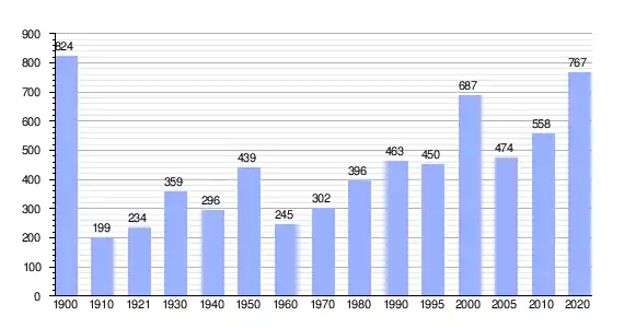 Gráfica de evolución demográfica de Apipilhuasco entre 1900 y 2020 |