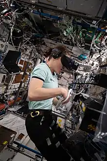 La NASA ha utilizado tecnología de realidad virtual durante décadas.[41] Su uso más notable de la realidad virtual inmersiva para entrenar a los astronautas antes de los vuelos. Los simuladores de realidad virtual incluyen la exposición a entornos de trabajo de gravedad cero, entrenamiento para caminatas espaciales y el uso de herramientas, utilizando maquetas de herramientas de bajo costo.[42][43][44]