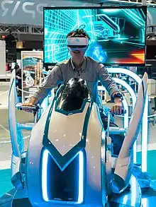 Los primeros auriculares comerciales de realidad virtual se lanzaron para jugar a principios de mediados de la década de 1990. Estos incluyen el casco Virtual Boy, iGlasses, Cybermaxx y VFX1 Headgear. los auriculares comerciales para juegos de realidad virtual incluyen el Oculus Rift, HTC Vive y PlayStation VR.[50] El Samsung Gear VR es un ejemplo de un dispositivo basado en teléfono.[51]