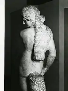 El trabajo presenta a un hombre desnudo y, aparte del tema enigmático, la escultura está hecha particularmente compleja por el uso de contra giro que muestra los contornos del cuerpo a fondo multiplicando los puntos de vista. Los brazos y las piernas están puestos para efectuar una correlación eficaz entre algunas uniones dobladas y el miembro opuesto liso. Por ejemplo, el brazo izquierdo está doblado y extendido el derecho, y la pierna derecha está extendida y la izquierda está doblada sobre una estructura inacabada sobre la tierra. Algunos declaran que la estructura pretendía llegar a ser la cabeza de Goliat. Detrás de la figura se encuentra el tronco de un árbol que esencialmente es estático y tiene una función de soporte para la estatua entera. Otra porción inacabada de mármol se extiende hacia arriba a lo largo de su espalda desde la cintura.