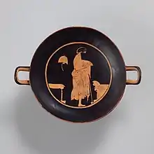 - «Terracotta kylix (drinking cup), ca. 500–490 B.C. Attributed to Apollodoros» (en inglés). Consultado el 10 de marzo de 2021.
