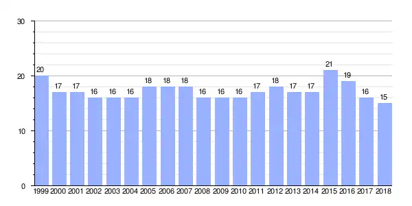 Gráfica de evolución demográfica de Ar entre 1999 y 2018 |
