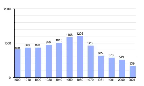 Gráfica de evolución demográfica de Arabayona de Mógica entre 1900 y 2021 |