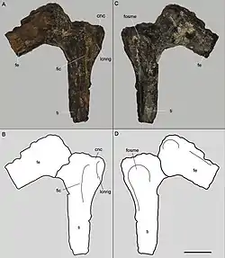 1. Juliana Manso Sayão; Antônio Álamo Feitosa Saraiva; Arthur Souza Brum; Renan Alfredo Machado Bantim; Rafael Cesar Lima Pedroso de Andrade; Xin Cheng; Flaviana Jorge de Lima; Helder de Paula Silva; Alexander W. A. Kellner (2020). "The first theropod dinosaur (Coelurosauria, Theropoda) from the base of the Romualdo Formation (Albian), Araripe Basin, Northeast Brazil". Scientific Reports. 10 (1): 10892. doi 10.1038/s41598-020-67822-9.