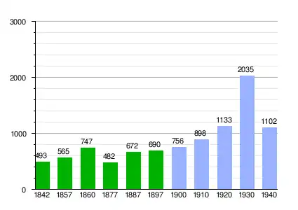 Gráfica de evolución demográfica de Aravaca entre 1842 y 1940 |