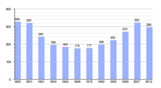 Gráfica de evolución demográfica de Arbérats-Sillègue entre 1800 y 2012 |
