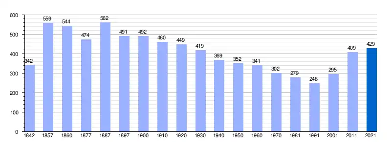 Población de derecho (1842-1991, excepto 1857 y 1860 que es población de hecho) o población residente (2001-2011) según los Censos de Población desde 1842. Población según el padrón municipal de 2021 del INE. |
