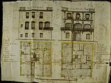 En 1756, cinco años después de este acuerdo municipal sobre el acondicionamiento de una sala especial que alojara el archivo, el arquitecto Vicent Gascó presentaba un proyecto para la edificación de un nuevo ayuntamiento que ocupara la misma planta que el anterior.[3] En el plano, se reservaba una sala del primer piso o "Avitasión Prinsipal" para archivo, concretamente la indicada con la letra "G Archibo" en el plano. Se encontraba al fondo de la planta, junto a la "Sala de Cavildo", a través de la cual se accedía. Se trataría de una habitación pequeña, de cuatro metros y medio de largo por uno y medio de ancho, comunicada con el exterior por una ventanita que daba a la calle Cullera. Según el proyecto el suelo del archivo, igual que el de la cocina, se haría con baldosas de Oliva o de Moncada. Aun así, el mencionado proyecto nunca llegaría a materializarse, y lo cierto es que en 1784 se construía el nuevo y definitivo edificio municipal que ha llegado hasta nuestros días, pero en el solar situado enfrente de donde Vicent Gascó lo proyectó en un primer momento. La distribución de las plantas y de la fachada difería bastante a la proyectada por Gascó en 1756. Pero todavía difería más el espacio destinado al archivo. En el nuevo edificio el archivo ocuparía toda la segunda planta del edificio, además de una cámara o pequeño desván donde se acumularía diverso material custodiado por el Ayuntamiento: alfombras, estandartes, círios, lámparas, etc.