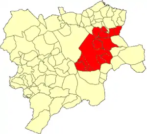 - Situado en la parte más occidental de la Diócesis, limita con el Arzobispado de Toledo, por el Noroeste; por el Norte, con el Arciprestazgo de Albacete y los de Jorquera, Casas-Ibáñez y Almansa, por el Este; y por el Sur, con los de Yecla y Hellín. Todos los pueblos pertenecen a la provincia de Albacete. El Arciprestazgo de esta última ciudad, como quiera que se formase a expensas del territorio de Chinchilla, lo atraviesa de Norte a Sur, dividiéndolo en dos partes al Este..."[3]