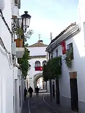 Sobre el arco se sitúa una capilla cuya titular es la Virgen de la Caridad, pero que la ciudad conoce como capilla del Cristo de la Humildad y Paciencia, imagen de gran devoción popular que se procesiona los Miércoles Santo por las calles de la Zafra antigua.En la cara extramuros llaman la atención las imágenes de los santos patronos del gremio de los zapateros y el pie castellano, una unidad de medida. Como todo edificio u obra pública, a lo largo de su longeva existencia ha sufrido múltiples modificaciones y restauraciones.