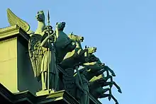 Entre 1827 y 1834, Vasili Stasov lo rediseñó y construyó un arco de piedra. Stasov también había erigido una puerta similar en el camino de Moscú a San Petersburgo. Vasili Demut-Malinovski fue el escultor responsable de la decoración escultórica del arco. Las esculturas de Fama ofreciendo coronas de laurel, tal y como es habitual en los arcos de tiempos del Imperio romano, llenan las enjutas del arco central. Niké, la deidad de la victoria en el combate, domina el arco en un carro tirado por seis caballos, conjunto esculpido por Peter Clodt Von Jürgensburg.