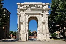 Durante el período del dominio napoleónico en Italia, los ingenieros franceses lo demolieron. Sus ruinas fueron trasladadas a una plaza y luego a la Arena. Utilizando algunas de las piedras originales, se completó una reconstrucción propuesta del arco en 1932.[3] Esta reconstrucción se basó en un modelo de madera realizado antes de la demolición, y reconstrucciones propuestas elaboradas ya en el siglo XVI por Andrea Palladio. Estos modelos subrayan la reverencia que se tiene incluso por ejemplos triviales de arquitectura monumental romana. El arco fue reconstruido bajo Mussolini, exhortando a Italia a identificarse con su pasado romano. El arco fue reconstruido junto a Castelvecchio, no lejos de su ubicación original.