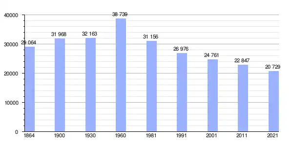 Gráfica de evolución demográfica de Arcos de Valdevez entre 1864 y 2021 |