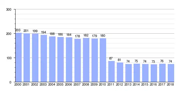 Gráfica de evolución demográfica de Ardesende entre 2000 y 2018 |