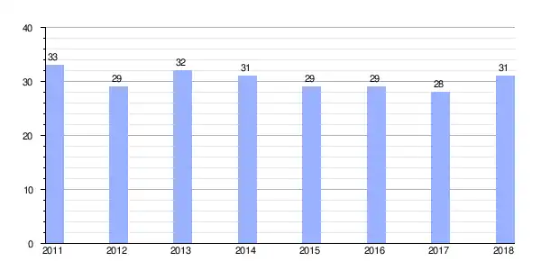 Gráfica de evolución demográfica de Ardilleiro Grande entre 2011 y 2018 |