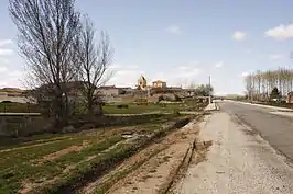 En la margen izquierda del río Pisuerga[2] junto a Palacios y frente a la localidad palentina de Lantadilla. Cruce de caminos entre las carreteras autonómicas BU-400 de Melgar a Castrojeriz y la BU-434 a Palacios y Lantadilla.