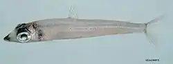 Cuerpo alargado y plateado, se ha descrito una captura de 24 cm de longitud,[4] pero la longitud máxima suele estar en 15 cm.[5] Las escamas carecen de espinas diminutas y la vejiga natatoria no es plateada.[2] Tiene seis branquiespinas en la parte inferior del primer arco branquial.[6]
