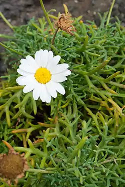 Arbustos flobosos o matas rastreras. 20-80 cm. Hojas de hasta 8 cm, linear-lanceoladas y obovadas, uni o bipinnatisectas, pecioladas, coráceas o suculentas, envés en ocasiones algo híspido; lóbulos lineari-lanceolados o lancelados, obtusos o acuminados. Inflorescencias corimbosas. Capítulos hasta 2 cm de diámtero. Lígulas blancas. Cipselas exteriores con 3 alas, siendo las laterales anchas y la ventral estrecha. Cipselas interiores uni-aladas comprimidas lateralmente. Vilano coroniforme, irregularmente dentado.[1] La subespecie pumilum se diferencia de las demás por el grosor de sus hojas, más gruesas.