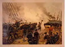 La última acción naval importante de la guerra fue el segundo asalto a Fort Fisher, en la desembocadura del río Cape Fear en Carolina del Norte. Fue una de las pocas acciones de la guerra en la costa en la que el Ejército y la Armada cooperaron plenamente.[27] La captura del fuerte selló Wilmington, el último puerto confederado para permanecer abierto. Con la muerte de la Confederación siguiendo en poco más de tres meses.