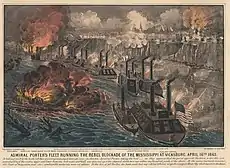 La captura de Nueva Orleans estuvo solo marginalmente relacionada con el bloqueo, ya que Nueva Orleans ya estaba bastante bien bloqueada.[26] Fue importante, sin embargo, por varias razones. El paso de la flota de Farragut por los fuertes debajo de la ciudad, mostró que las fortificaciones fijas no podían defenderse contra una flota que funcionaba con vapor, lo que fue crucial para el surgimiento de la importancia de la Marina en igualdad al Ejército en la defensa nacional. También demostró la posibilidad de atacar a la Confederación a lo largo de la línea del río Misisipi, y por lo tanto era un predecesor importante, incluso vital, de la campaña que finalmente dividió a la Confederación. Finalmente, puso en duda la capacidad de la Confederación para defenderse, y así dio a las naciones europeas razones para no otorgar el reconocimiento diplomático.