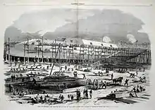 El presidente Abraham Lincoln proclamó el bloqueo de todos los puertos en los estados sececionados el 19 de abril de 1861, uno de los primeros actos de su administración tras el bombardeo de Fort Sumter .[19] Exista mayoritariamente sobre papel en los días tempranos del conflicto, pero se hizo cada vez más intenso a medida que este continuaba. Aunque el bloqueo nunca fue perfecto, contribuyó al aislamiento del sur y aceleró la devaluación de su moneda.[20]