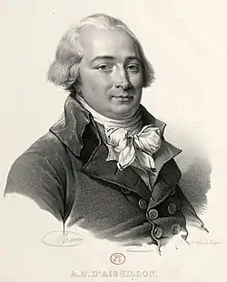 Diputado de la nobleza de la senescalía de Agen en los Estados generales de 1789, es uno de los más ardientes partidarios de la Revolución en sus inicios y uno de los miembros más destacados del Club bretón. Es uno de los primeros representantes de la nobleza en unirse al tercer estado y fue miembro de la Asamblea Nacional Constituyente. Una vez que Louis-Marie de Noailles pide la supresión sin indemnización de sus servidumbres personales, el duque de Aiguillon, la mayor fortuna del reino después del rey, sube a la tribuna en la noche del 4 de agosto de 1789 para proponer la recompra a muy bajo interés de los derechos feudales y la renuncia a sus privilegios nobiliarios. Esto le vale la hostilidad de la derecha monárquica. Se dice que se disfrazó de verdulera, el 5 y 6 de octubre de 1789, durante la invasión del palacio de Versailles por la muchedumbre. Honoré Gabriel Riqueti, conde de Mirabeau le encontró en el camino y le gritó : "¡Te pasé de largo, s.....!".