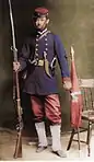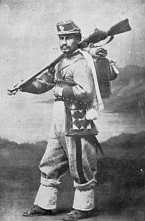Soldado chileno armado con un corvo y un fusil Comblain con bayoneta.