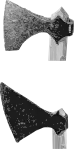 Una cabeza de hacha era en su mayoría de hierro forjado , con un filo de acero. Esto hizo que el arma sea menos costosa que una espada, y fue un artículo estándar producido históricamente por herreros.