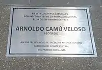 ![]() Placa en memoria de Arnoldo Camú Veloso | ||