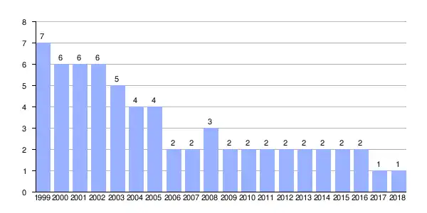 Gráfica de evolución demográfica de Aroja entre 1999 y 2018 |