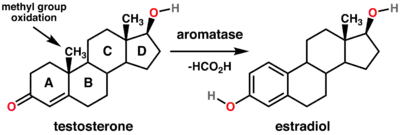 ![]() La aromatasa convierte la testosterona en estradiol. |
