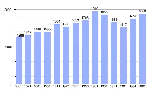 Gráfica de evolución demográfica de Arpaia entre 1861 y 2001 |