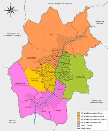 La arquidiócesis de Medellín (en latín, Archidioecesis Medellensis) es una circunscripción eclesiástica de la Iglesia católica en Colombia, sede metropolitana de la provincia eclesiástica de Medellín, con cuatro diócesis sufragáneas: Caldas, Girardota, Jericó y Sonsón-Rionegro.[3] La jurisdicción de la arquidiócesis comprende el territorio de los municipios de Medellín, Bello, la mayor parte de Envigado, Itagüí, Sabaneta, La Estrella y Copacabana, dentro del Área Metropolitana de Medellín, en el departamento de Antioquia.[4]