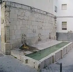 - Fuente de los Caños: construida en 1558, en la Plaza de Los Caños, se alimentaba del raudal de La Magdalena. Consta de un gran pilar-abrevadero decorado con pilastras cuadradas en su frente. El muro está enmarcado por dos dioses Términos que sostienen en la cabeza capiteles en forma de canastillos de flores, con volutas de orden jónico, adornado con un friso con florones. En la parte inferior hay tres hornacinas dentro de las cuales, en alto relieve,figuran niños desnudos que vierten ánforas de cuyas bocas arrancan los caños por donde sale el agua. Hay varias inscripciones fechadas en 1569 y 1648. La obra está atribuida a Francisco del Castillo el Mozo.