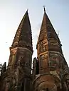 - Jor-bangla, tiene un techo de estilo ek-bangla (o do-chala), con dos segmentos curvos que se encuentran en una cresta curvada.