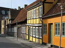 La antigua ciudad en Aahus, Jutlandia, es un museo de villa al aire libre que consiste en 75 edificios históricos compilados de partes de todo el país. Estos incluyen una variedad de casas con entramados, algunas datadas en el medio del siglo XVI.[13]
