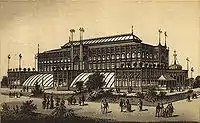 La Exposición del Centenario, la primera Feria Mundial Estadounidense, tuvo lugar en Filadelfia en 1876. La exposición incluyó la construcción de más de 200 edificios, la mayoría temporales, incluido el Main Exhibition Building (Edificio Principal de Exposiciones), diseñado por Joseph M. Wilson y Henry Petit, que era el edificio más grande del mundo en ese momento. Los dos principales edificios permanentes de la exposición fueron Horticultural Hall y Memorial Hall, ambos diseñados por Herman J. Schwarzmann. Horticultural Hall (demolido en 1955) era una estructura de hierro y vidrio de estilo morisco construida como tributo a The Crystal Palace de Londres.[13][14] El Memorial Hall de estilo Beaux-Arts (ahora sede del Museo Please Touch) fue construido con ladrillo, vidrio, hierro y granito.[15]